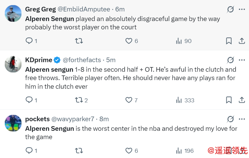 申京是一个关键时刻表现糟糕的球员,罚球也很差,关键时刻乌度卡就不该给他任何的战术;申京是NBA最糟糕的中锋,他彻底毁掉了我对篮球的热爱。