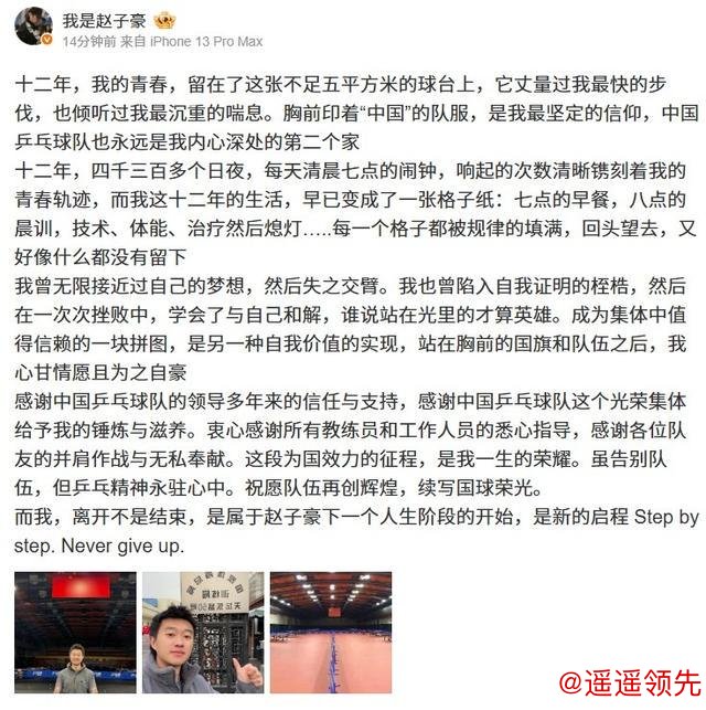 乐鱼体育下载 赵子豪发文告别国乒:离开不是结束,是属于下一个人生阶段的开始